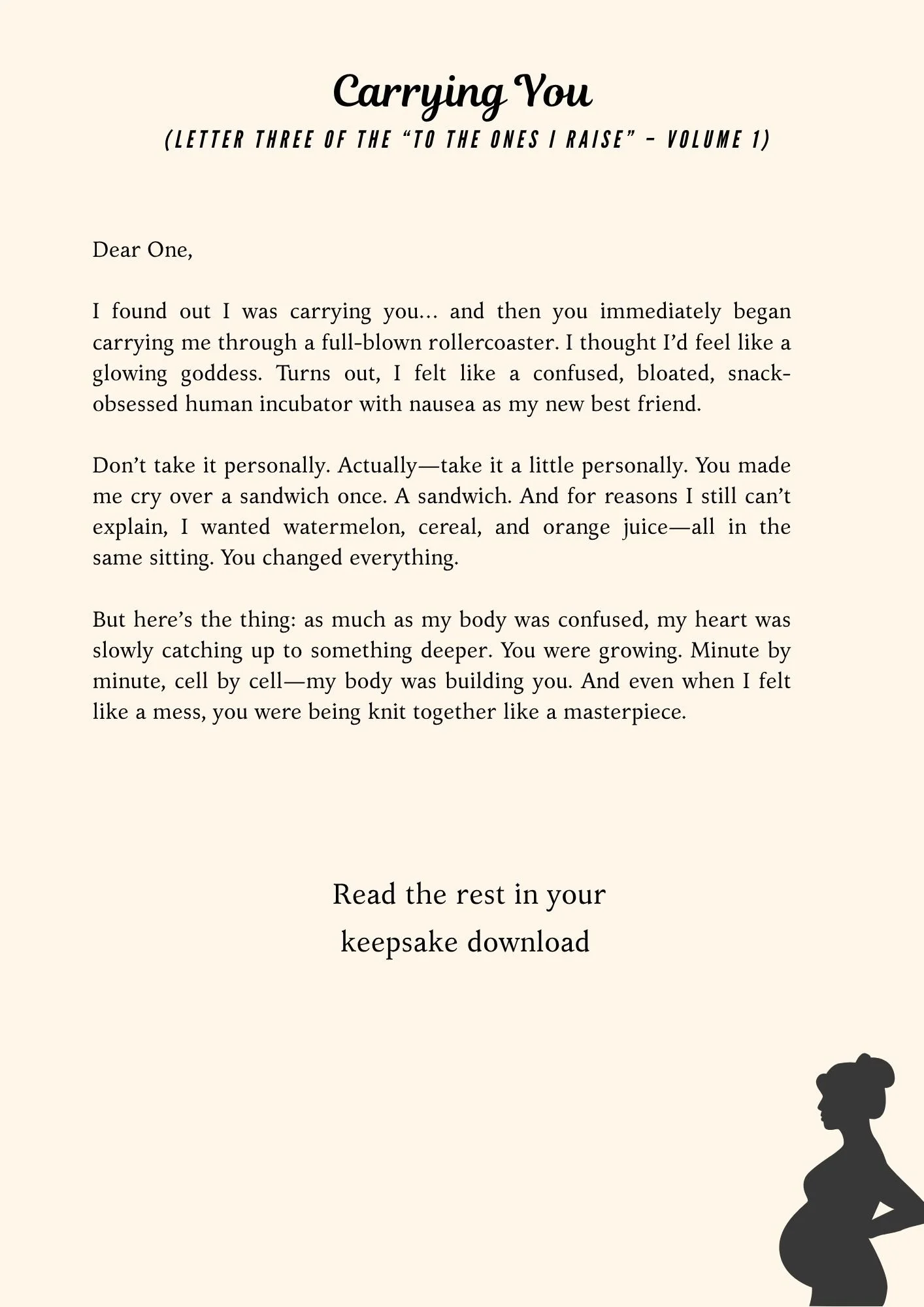 We hope you have enjoyed Volume 1 to our poem and letter series that tells the story of a woman becoming a mother and the journey of her motherhood through her lens.